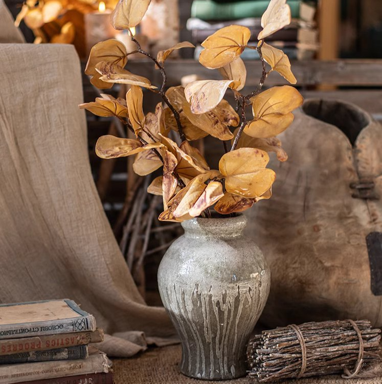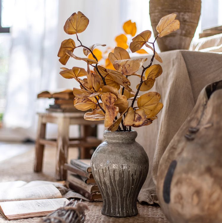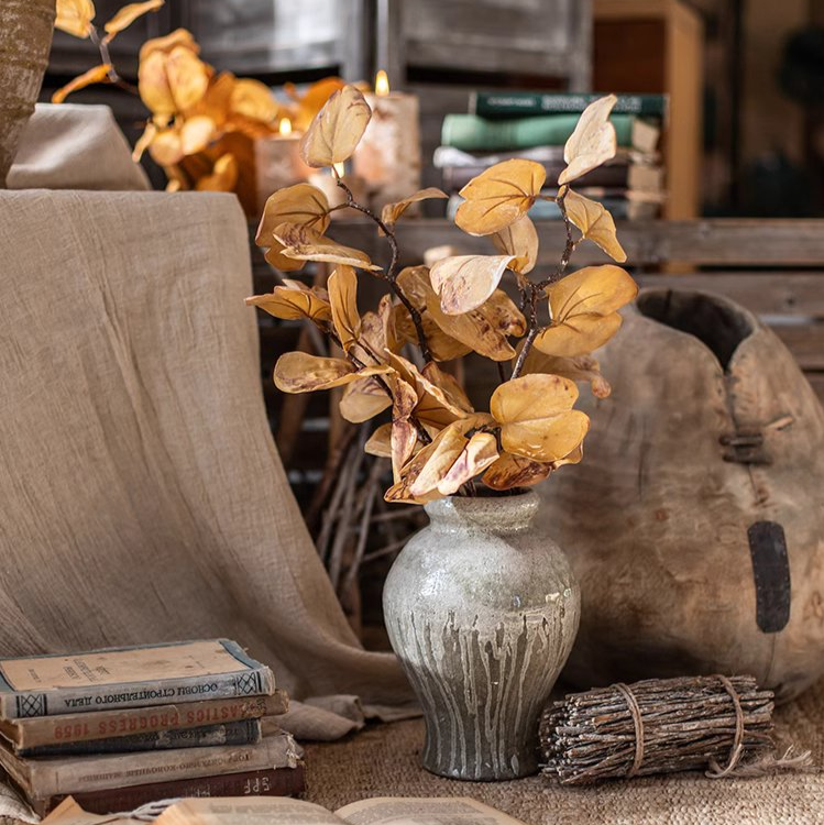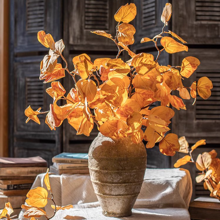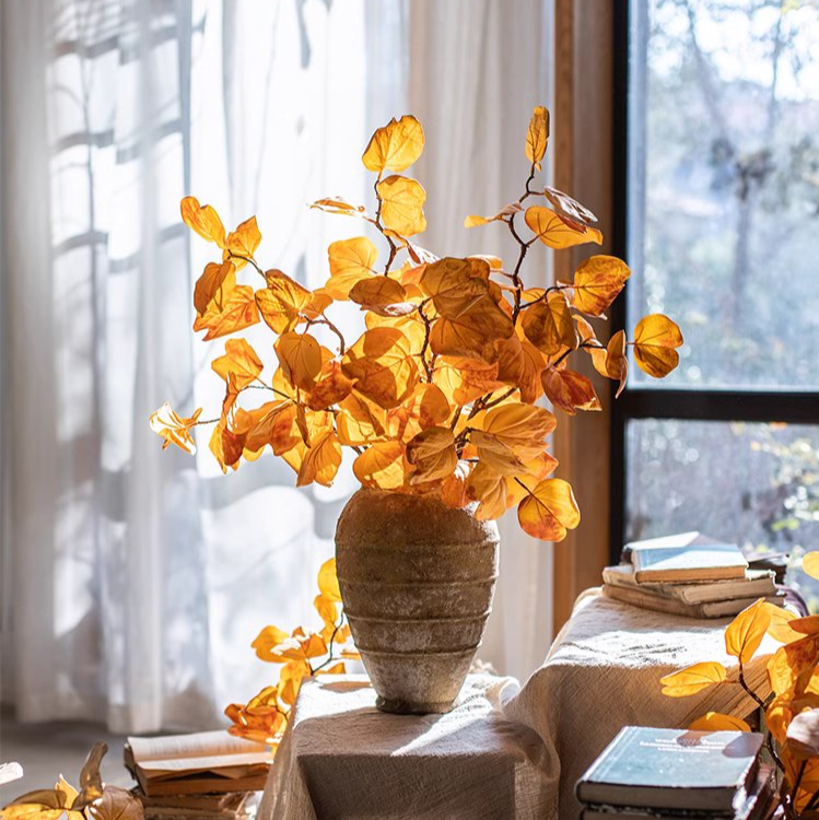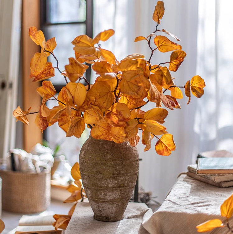 Bring a touch of autumn indoors with this tall faux apple leaf stem, handmade with silk cloth and plastic for a lifelike finish. At nearly three feet tall, it’s perfect for creating seasonal arrangements, filling tall vases, or adding rustic texture to your fall décor.