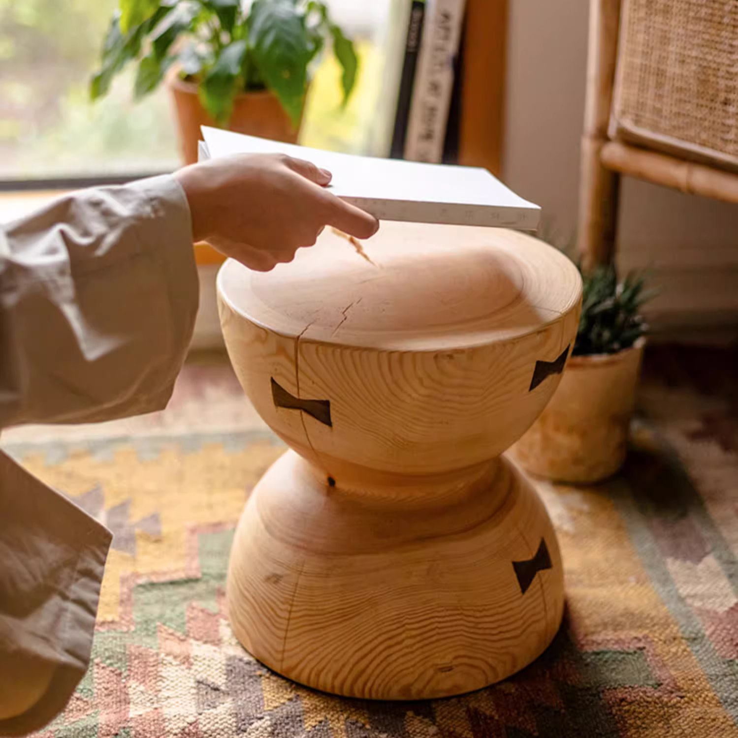 Enhance your space with a handcrafted solid pine end table accented in black walnut. Natural wood grain and warm tones bring rustic character and timeless craftsmanship, perfect for displaying décor, holding a lamp, or styling beside your favorite chair.