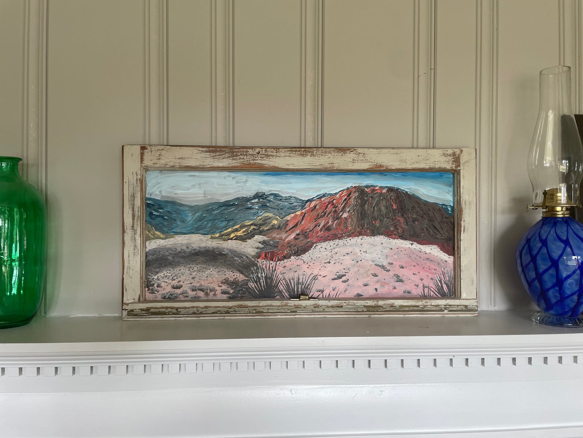 Material: Vintage reclaimed wood window with hand-painted glass