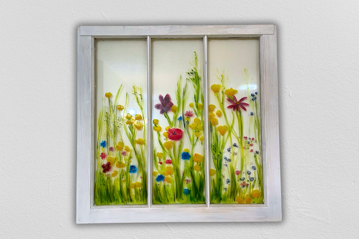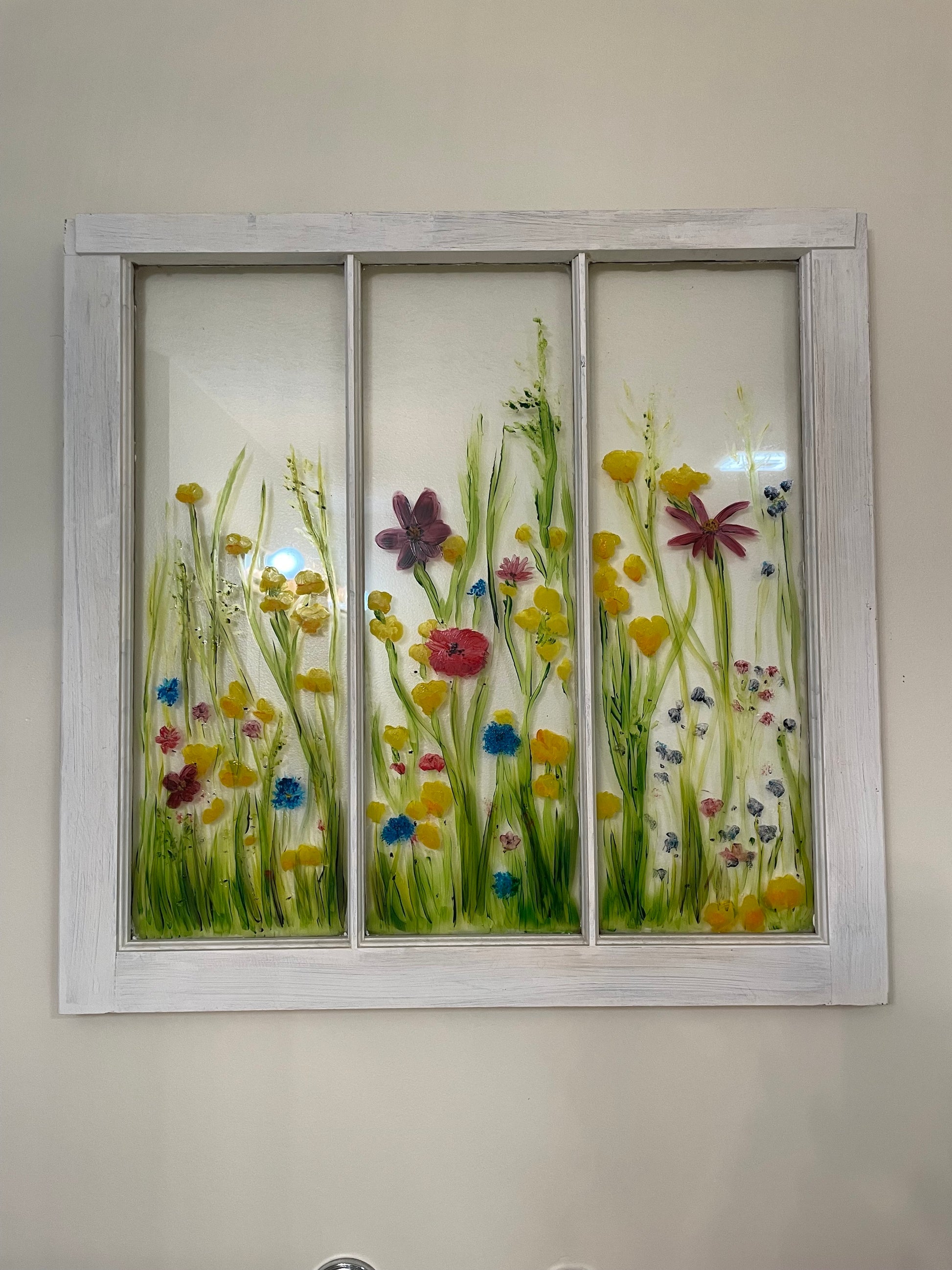 Delight in the simple beauty of nature with The Wandering Bloom, a hand-painted vintage window adorned with delicate wildflowers. Each bloom appears to grow effortlessly up the panes, as if kissed by the morning sun and swaying in a gentle breeze. The minimal yet enchanting design captures the essence of untamed meadows, bringing a whimsical and organic charm to any space. Whether displayed as a focal point or as part of a cozy vignette, this piece offers a timeless connection to the serene beauty of the natural world.